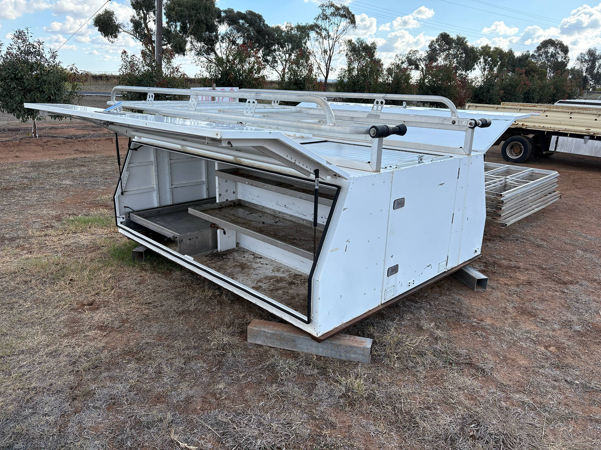 Ute Stock Crate, Stainless Tank, Steel Press, Roller, Generator, Box Trailers, Tractor Tyres, Workshop Benches, Drums, Rolls of Wire, Suction Hose, Workshop Tools, Racks, Trolley, Tool Boxes, Scrap Metal, Treated Pine Posts, Sheep Feeder.